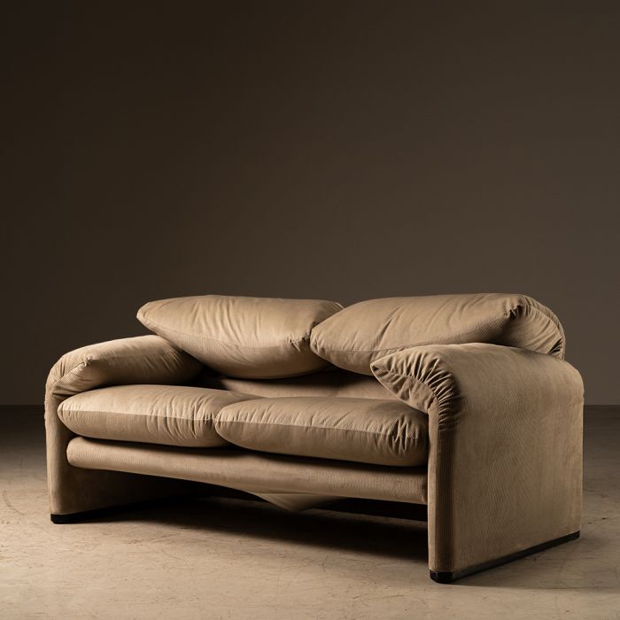 descrição Sofá "maralunga" do designer italiano Vico Magistretti. Criado em 1973, se tornou um best-seller internacional. Seu mecanismo permite o ajuste da altura do apoio de cabeça.
