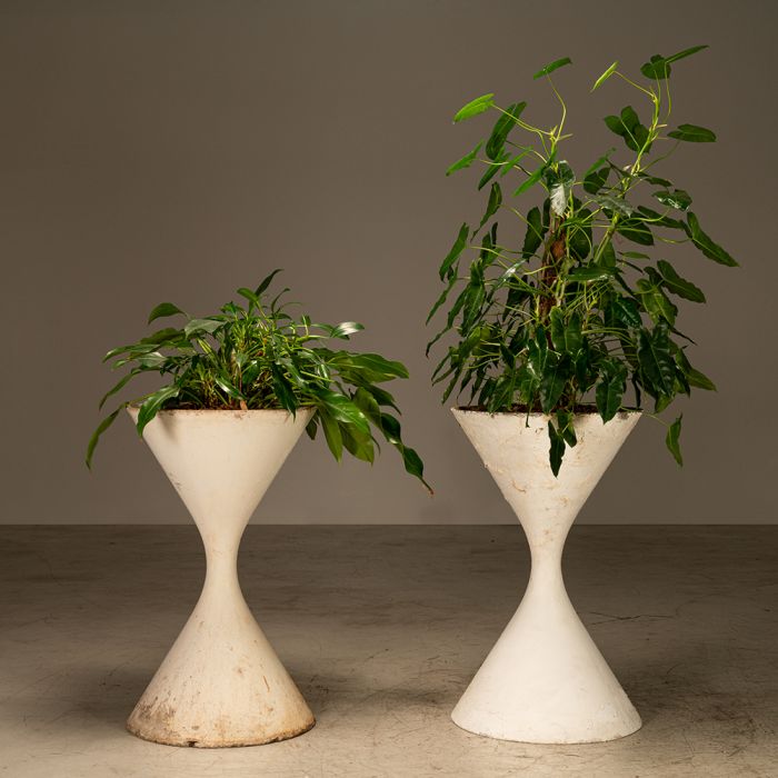 Vaso "spindel" em fibra de cimento, desenho de willy guhl para eternit suiça, fabricado no brasil pela eternit brasil. década de 60. Peça no estado original, pode passar pelo processo de raspagem para remoção da tinta.
