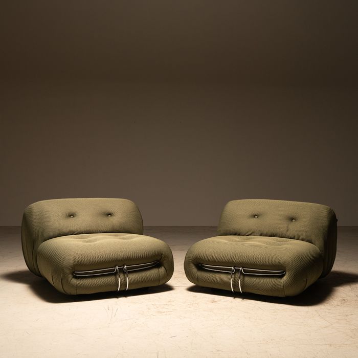 descrição poltrona soriana, design italiano assinado pelo casal Afra & Tobia Scarpa. estrutura em metal e tecido marca branyl com tecnologia Repreve.