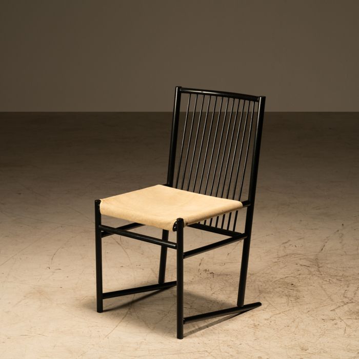 descrição Rara cadeira de Joaquim Tenreiro em madeira ebanizada e assento em camurça.