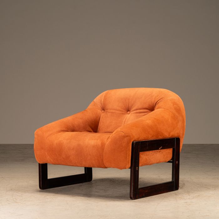 poltrona MP-105 em madeira Jatobá, assento e encosto em espuma injetada, assinada pelo percival lafer.